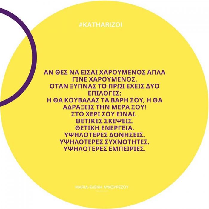 ΑΝ ΘΕΣ ΝΑ ΕΙΣΑΙ ΧΑΡΟΥΜΕΝΟΣ ΑΠΛΑ ΓΙΝΕΧΑΡΟΥΜΕΝΟΣ. ΟΤΑΝ ΞΥΠΝΑΣ ΤΟ ΠΡΩΙ ΕΧΕΙΣΔΥΟ ΕΠΙΛΟΓΕΣ:Ή ΘΑ ΚΟΥΒΑΛΑΣ ΤΑ ΒΑΡΗ ΣΟΥΉ ΘΑ ΑΔΡΑΞΕΙΣ ΤΗΝ ΜΕΡΑ ΣΟΥ!ΣΤΟ ΧΕΡΙ ΣΟΥ ΕΙΝΑΙ. ΘΕΤΙΚΕΣ ΣΚΕΨΕΙΣ.ΘΕΤΙΚΗ ΕΝΕΡΓΕΙΑ.ΥΨΗΛΟΤΕΡΕΣ ΔΟΝΗΣΕΙΣ.ΥΨΗΛΟΤΕΡΕΣ ΣΥΧΝΟΤΗΤΕΣ.ΥΨΗΛΟΤΕΡΕΣ ΕΜΠΕΙΡΙΕΣ.