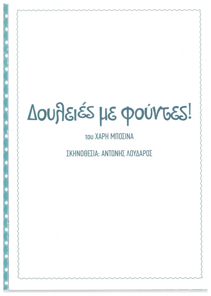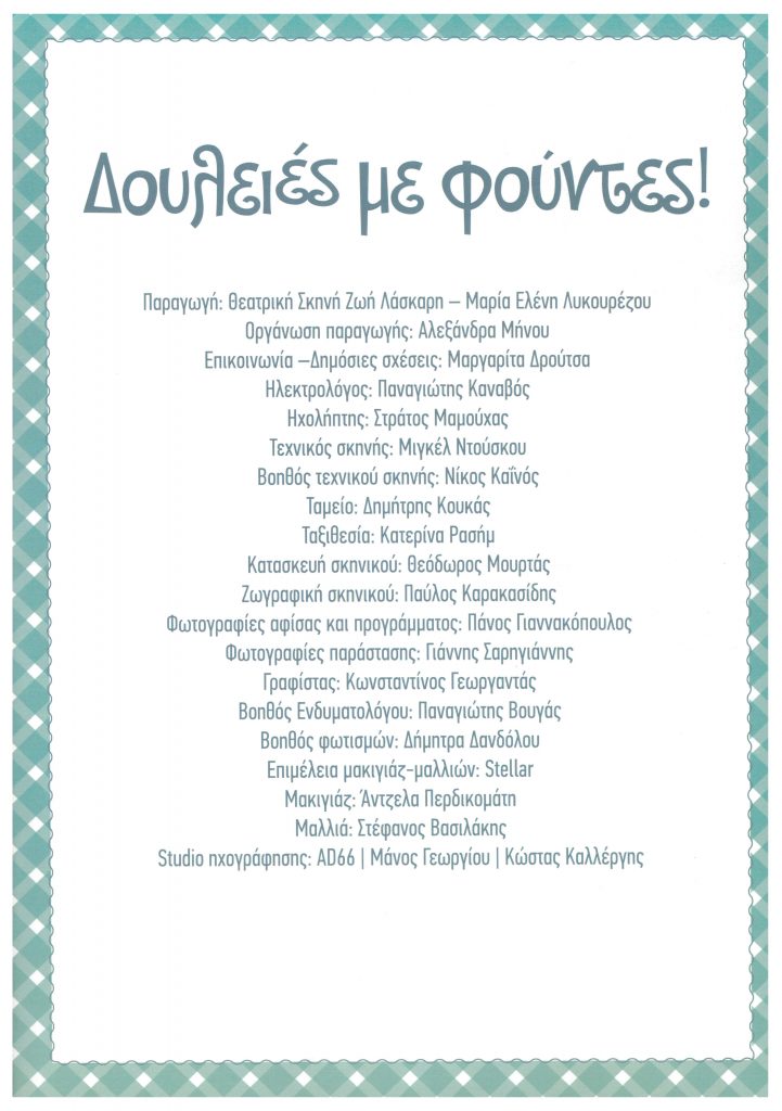 Δουλειές με φούντες. Παράσταση 2017-2018. Παραγωγή και ηθοποιός Μαρία-Ελένη Λυκουρέζου.
