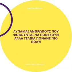 ” ΛΥΠΑΜΑΙ ΑΝΘΡΩΠΟΥΣ ΠΟΥ ΦΟΒΟΥΝΤΑΙ ΝΑ ΠΟΝΕΣΟΥΝ ΑΛΛΑ ΤΕΛΙΚΑ ΠΟΝΑΝΕ ΠΙΟ ΠΟΛΥ “